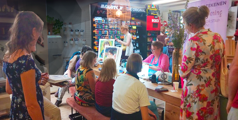 Wij verkopen in onze winkel en in onze webshop Tekenmaterialen zoals Alcohol Markers van Copic, Promarker of Graph'it, Paintmarkers van Posca of Molotow, Chalkmarkers en Aquarelmarkers en Brush Pennen (Tombow, Ecoline Brush pen), maar natuurlijk ook andere Stiften & Fineliners (Sharpie, Edding, Uni Pin, Multiliners of Rotring). Ook linialen, geodriehoeken kan je online of in de winkel in Zwolle kopen bij ons. Potloden & Krijt van bijvoorbeeld Van Gogh Oliepastel, Rembrandt Soft pastel en PanPastel. Of het beste kleurpotlood ter wereld: Caran d'ache Luminance. Voor de kunstschilders verkopen we schildermaterialen, zoals Acrylverf, Golden Heavy Body of Golden Open Acrylverf, Amsterdam Acrylverf Aanbieding, Olieverf, Aquarelverf, Goauche en Ei-tempera van Sennelier Penselen, Papier, Schildersdoeken, Schildersezels. Daarnaast hebben we Inlijstmaterialen, Grafiek materiaal, Kleibenodigdheden, voor studenten en scholieren verkopen we Schoolmaterialen en natuurlijk hebben we allerlei Aanbiedingen.