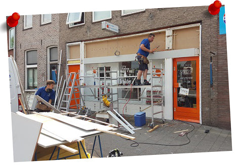 De winkel is in de loop der jaren meerdere keren verbouwd en vergroot. Van een kleine winkel naar inmiddels een mooie, fijne, ruime winkel en lijstenmakerij (boven). Maar bij het uitbreiden van de winkel en het assortiment is langzaam, maar zeker ook ons team uitgegroeid naar 12 medewerkers, veelal zelf kunstenaar.