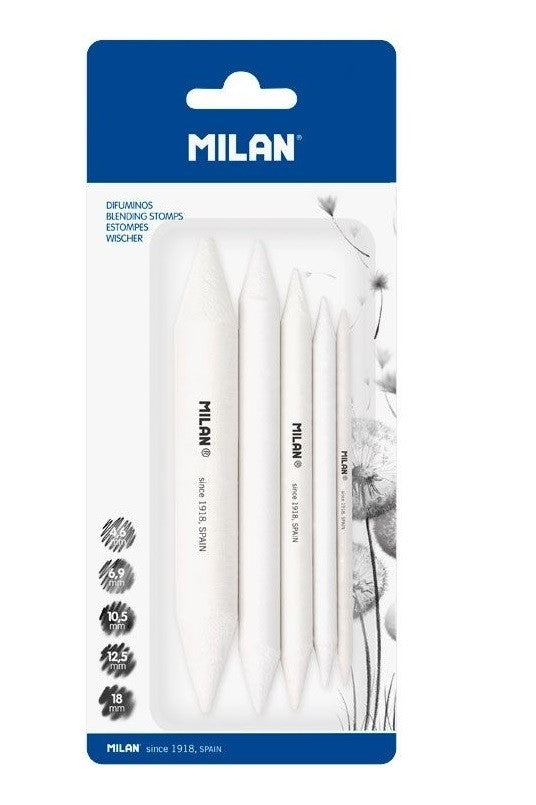 De Milan Blending Stomps zijn onmisbaar voor iedere tekenliefhebber die streeft naar subtiele overgangen en perfecte schaduwpartijen. Deze stompjes, gemaakt van stevig en fijn samengeperst papier, liggen prettig in de hand en maken het eenvoudig om houtskool, grafiet of pastel vloeiend te blenden. Ze bieden controle en precisie bij het aanbrengen van zachte nuances, zonder het papier te beschadigen of te vlekken. Of je nu werkt aan een gedetailleerd portret of een dromerige schets, deze blending tools helpen je om meer diepte en sfeer in je werk te brengen. De stomps zijn duurzaam, makkelijk schoon te maken en gaan lang mee – een betrouwbaar hulpmiddel voor elke creatieve sessie.