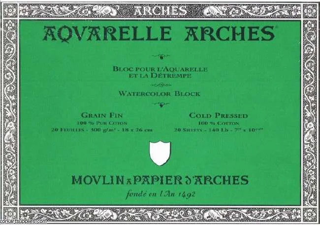 Arches is onze beste kwaliteit geschept Aquarelpapier. Het papier is 100% katoen en door de traditionele perswijze neemt het papier het beste water op. Het is bovendien zuurvrij en erg stevig. Het papier kan enorm veel water aan zonder dat de kleuren uitlopen en bobbelt niet. De Grain Fin is een glad papier met een beetje structuur, perfect voor wassingen en details.